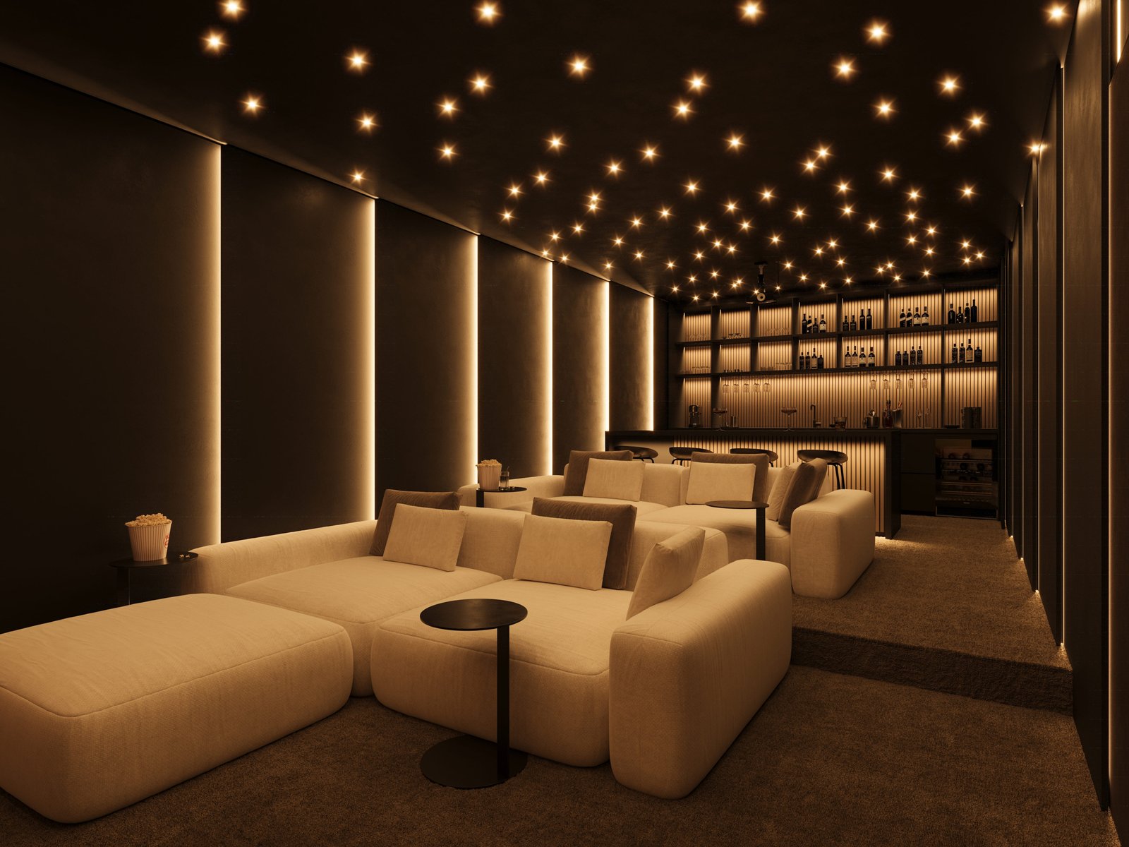 - Private cinema room with home bar, ideal for unforgettable moments with family and friends
